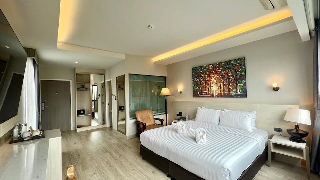 Les chambres du Le Naview Pra Singh offrent un style moderne et épuré, avec des espaces lumineux pensés pour le confort quotidien. Chaque catégorie propose une ambiance calme, une literie de qualité et des équipements essentiels pour un séjour agréable, qu’il s’agisse d’une chambre double, supérieure ou d’une suite plus spacieuse.