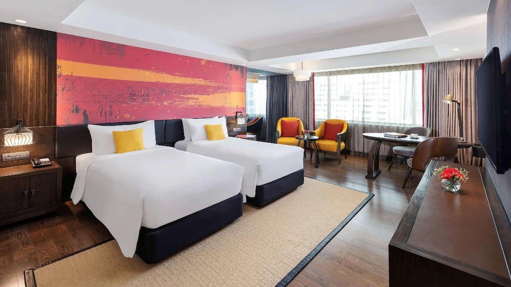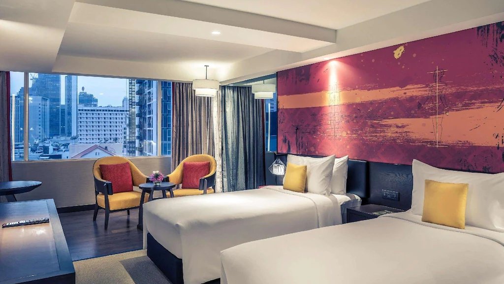 Les types de chambres du Mercure comprennent des Deluxe (King ou Twin), des Privilege plus spacieux et des Suites luxueuses, tous décorés avec élégance. Certaines chambres offrent des vues sur la ville, des baignoires ou un accès au salon Privilege pour un séjour plus exclusif.
