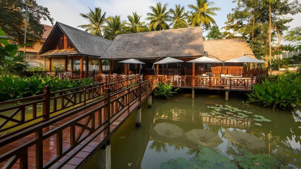 Niché dans un vaste jardin tropical orné d’œuvres artistiques et d’un paisible étang de lotus, cet hôtel au design colonial revisité vous accueille dans des chambres lumineuses, décorées avec raffinement et touches artisanales locales. Vous pourrez flâner dans les allées verdoyantes, vous détendre au bord de la piscine ou savourer la cuisine créative du restaurant White Lotus, inspirée de recettes traditionnelles revisitées. L’hôtel propose aussi des activités culturelles et des espaces de détente pour une parenthèse sereine au cœur de Luang Prabang.