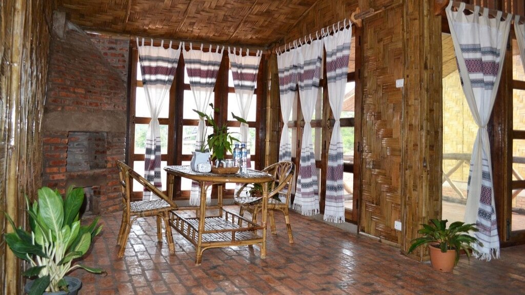 Ses hébergements, spacieux et lumineux, offrent des vues apaisantes sur le jardin tropical et les paysages naturels environnants. Chaque espace combine un design confortable et authentique avec des touches locales, et certains bungalows disposent de terrasse privée pour profiter pleinement de la tranquillité et de l’atmosphère chaleureuse du Phou Iu Bungalow.