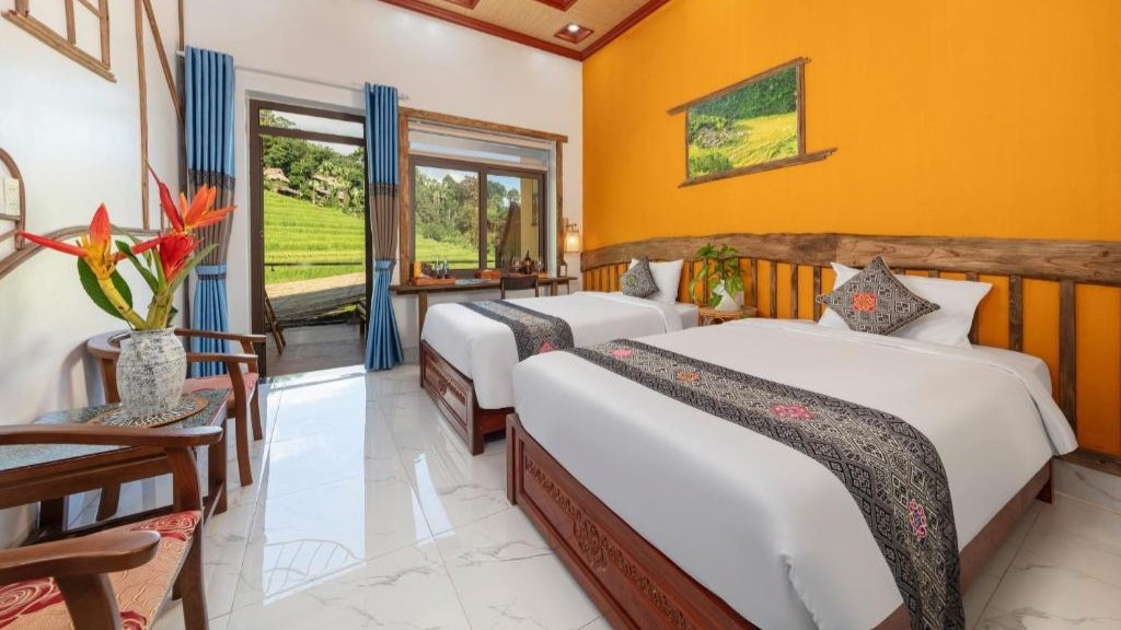 Situé au milieu des collines et rizières en terrasses de Pu Luong, ce lodge de luxe offre une harmonie parfaite entre confort moderne et nature préservée. Les villas et pavillons, lumineux et décorés avec goût, intègrent des matériaux locaux et des touches artisanales. Profitez des panoramas spectaculaires, détendez-vous dans les espaces bien-être ou savourez une cuisine raffinée préparée avec des produits de la région.