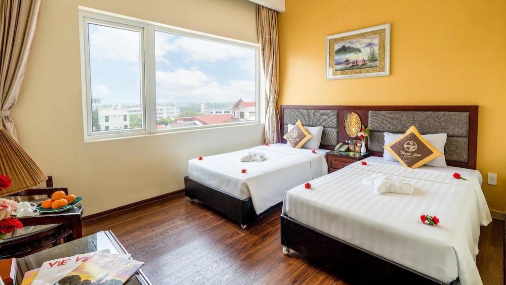 Thanh Lịch Hotel vous propose des chambres élégantes et confortables, alliant design raffiné, matériaux de qualité et touches inspirées de l’architecture traditionnelle vietnamienne. Chaque espace offre un cadre paisible et lumineux, avec vue sur les rues calmes ou les sites historiques à proximité, ainsi que coins détente pour profiter pleinement de l’atmosphère de la ville. L’ambiance raffinée et sereine est idéale pour un séjour reposant et immersif au cœur de Hué.
