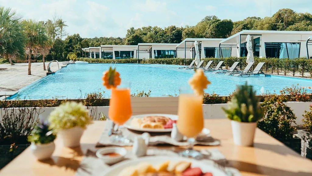 Le resort propose une superbe piscine à débordement située juste face à la plage, idéale pour se prélasser tout en admirant l’océan. Côté restauration, un bar et un restaurant sur place permettent de déguster des plats asiatiques et internationaux avec une vue panoramique.