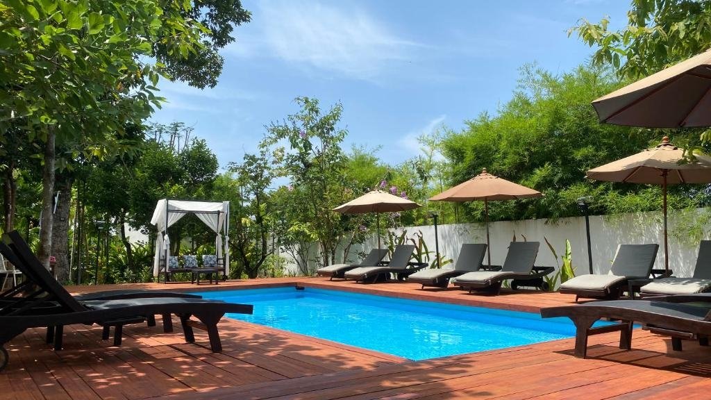 Un refuge paisible à Champasak : The Riviera Champasak, où confort moderne, balcons avec vue sur le Mékong et piscine extérieure se mêlent dans une ambiance sereine au cœur du Laos.