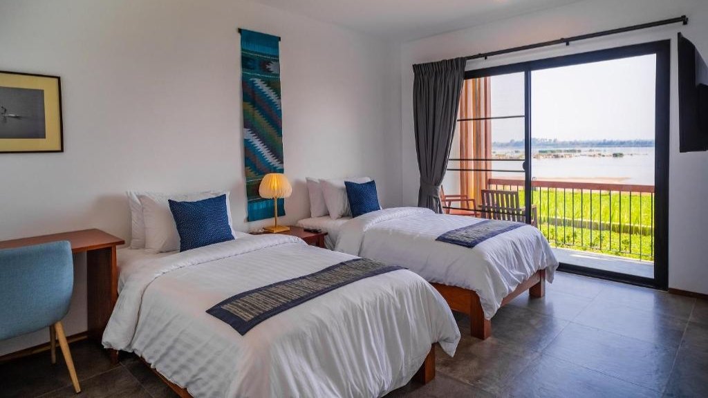Chaque chambre spacieuse du Nakorn River View Hotel allie design contemporain et touches laotiennes authentiques, avec de grandes baies vitrées laissant entrer la lumière et offrant une vue directe sur le fleuve ou les jardins tropicaux. Certains logements disposent de balcons privés, parfaits pour savourer la sérénité de Don Khong tout en admirant les reflets du Mékong au coucher du soleil.