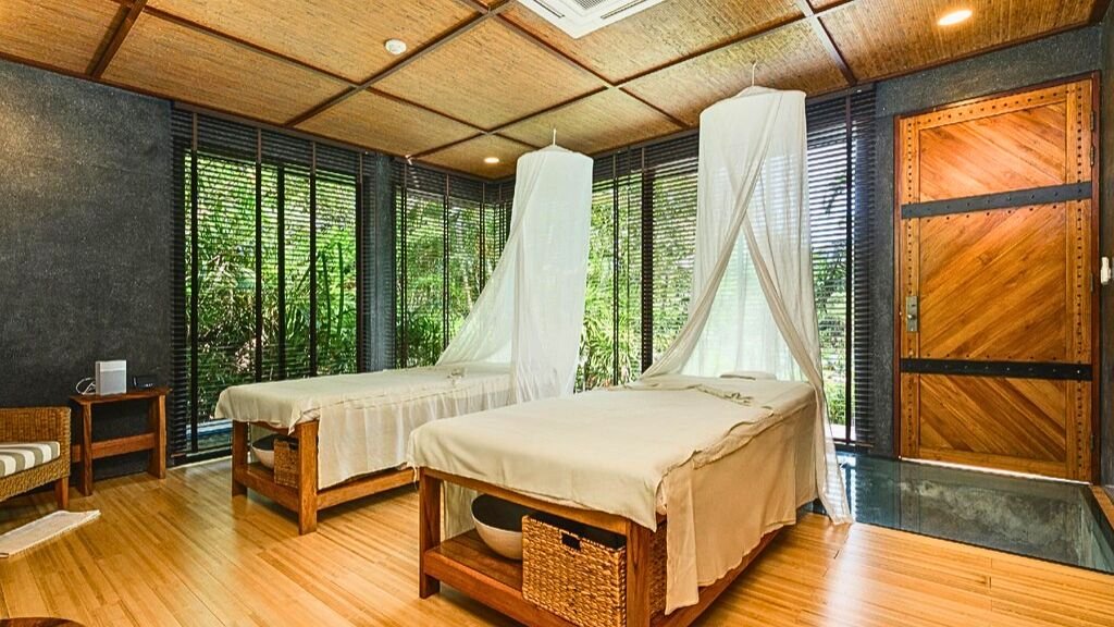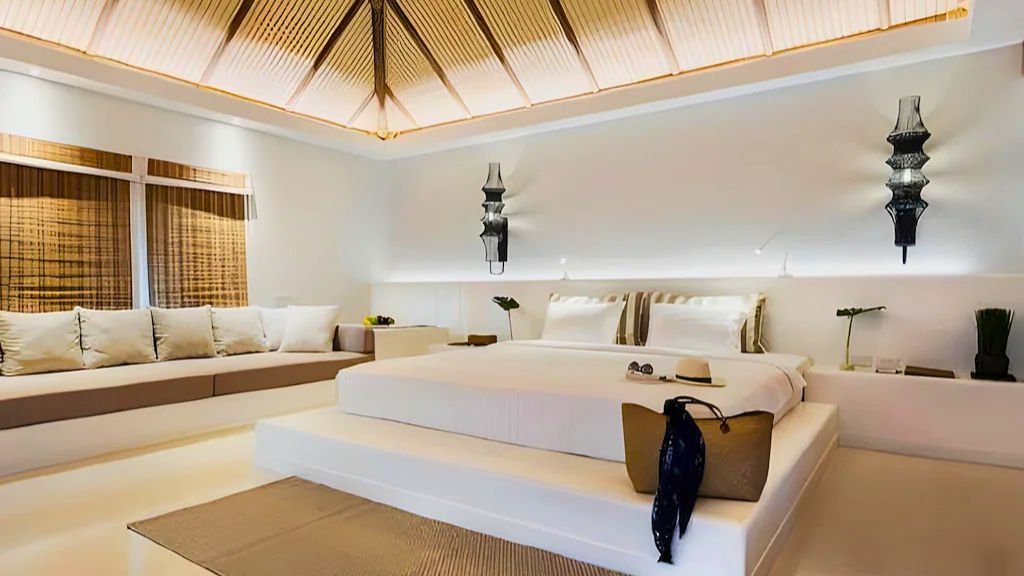 Construit avec des matériaux durables comme le teck, le bambou et le calcaire, le resort allie luxe et respect de l’environnement dans un cadre naturel préservé. Les bâtiments à un seul étage s’intègrent harmonieusement au paysage insulaire, et l’énergie solaire alimente notamment les sentiers et installations.